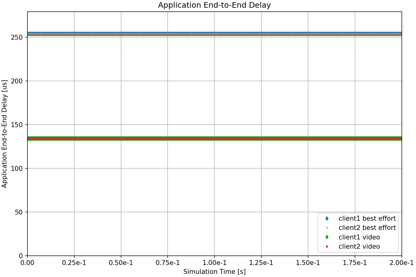 The application end-to-end delay for the different traffic classes is displayed on the following chart: