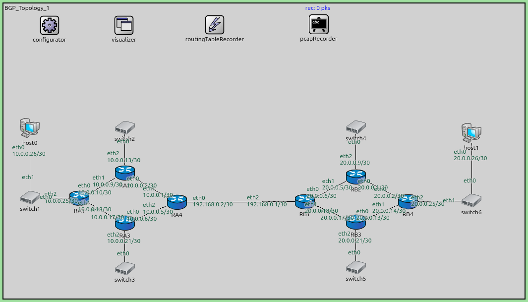 startDelay = 60sinBGPConfig_EBGP.xml), RA4 and RB1 initiate their BGP session.