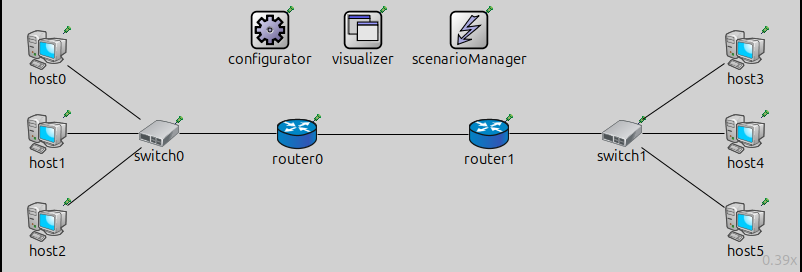 For this step, we use a simpler network topology defined in RipNetworkB.ned.